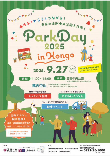 今週土曜日、9月27日(土)11:00〜15:00で金剛中央公園にて楽しいイベントがあります。