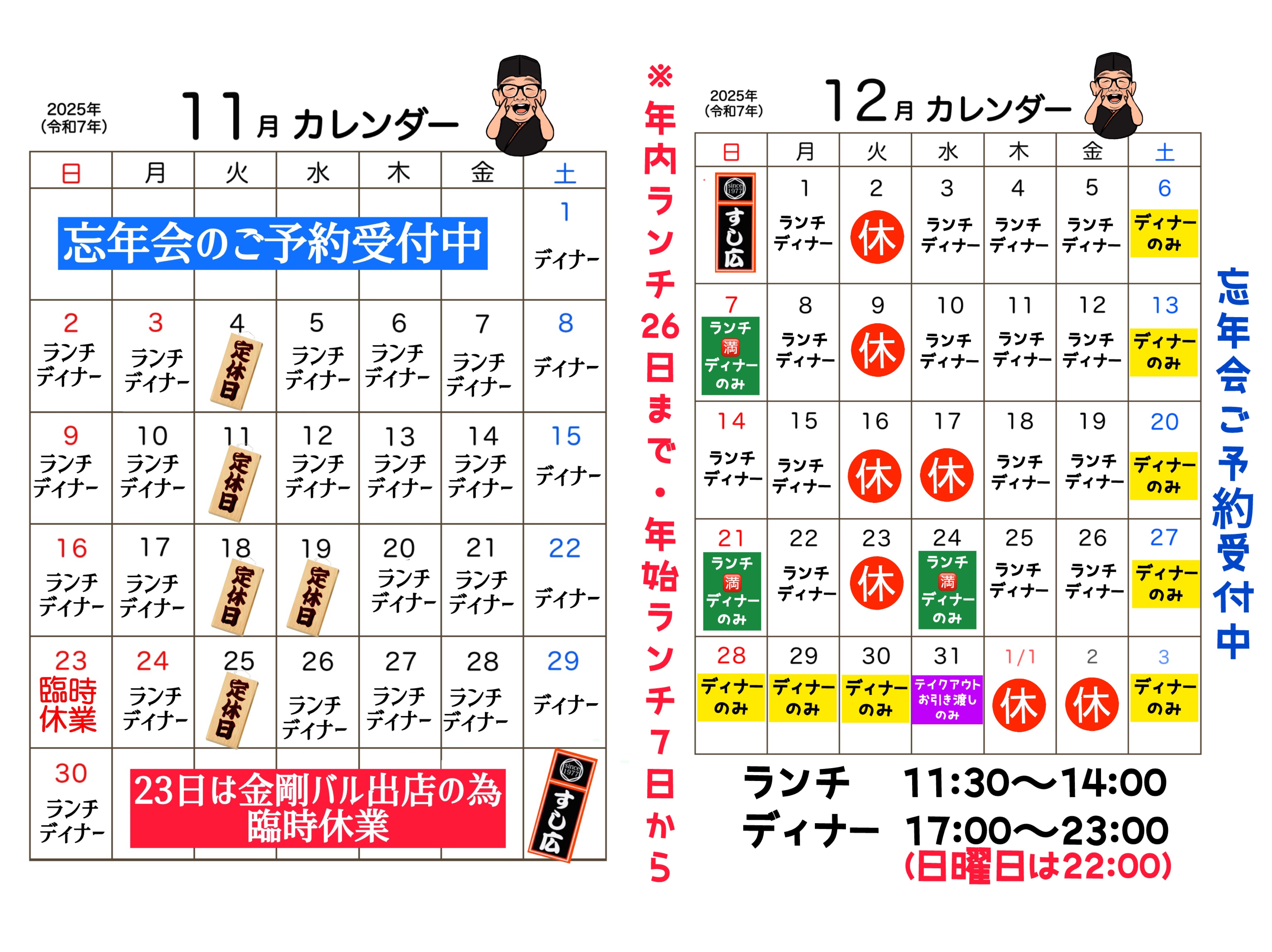 【昼】月〜金・日 11:30〜14:00(L.O.13:30)