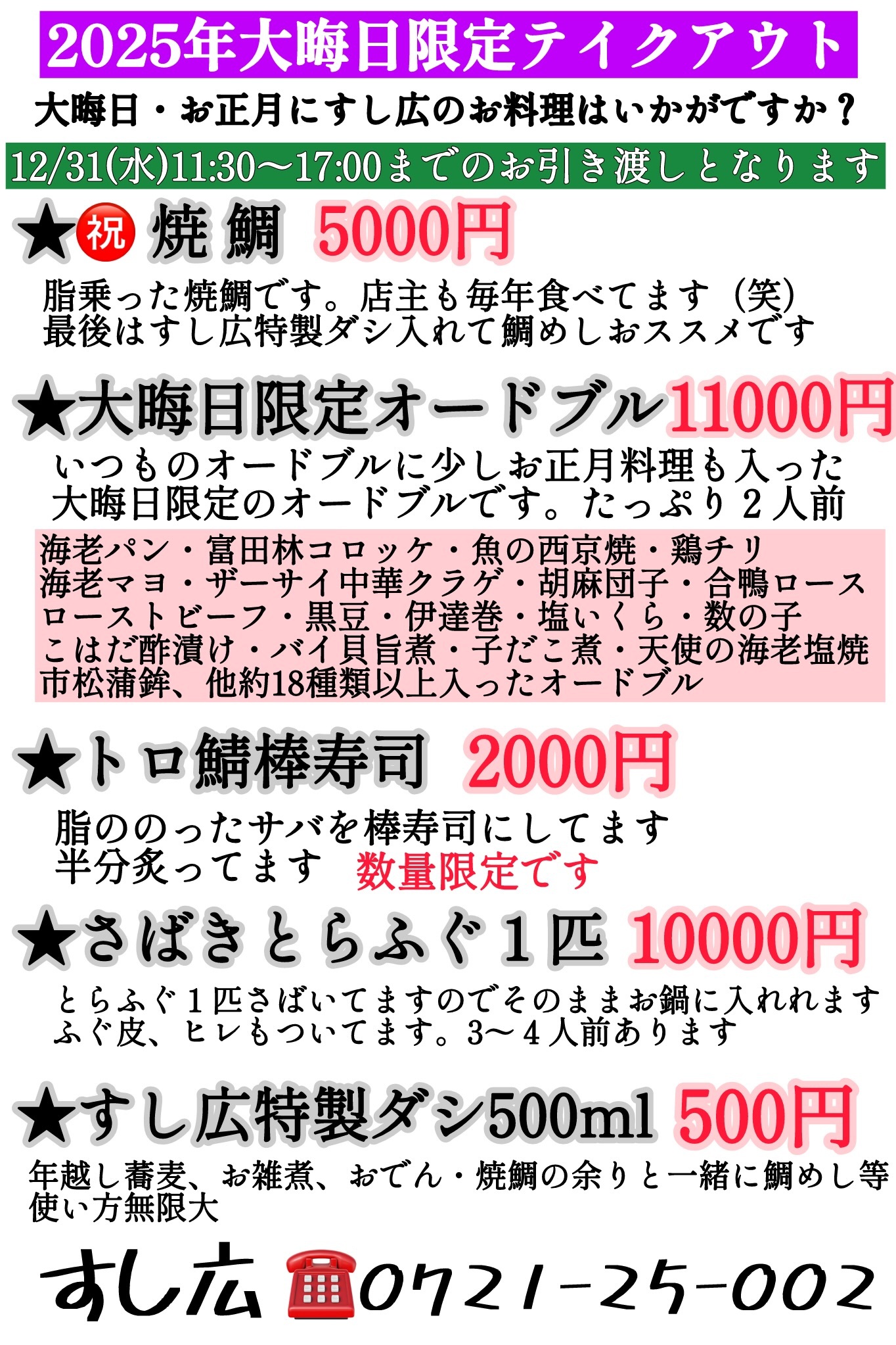2025年の年末テイクアウトメニューをご紹介させていただきます