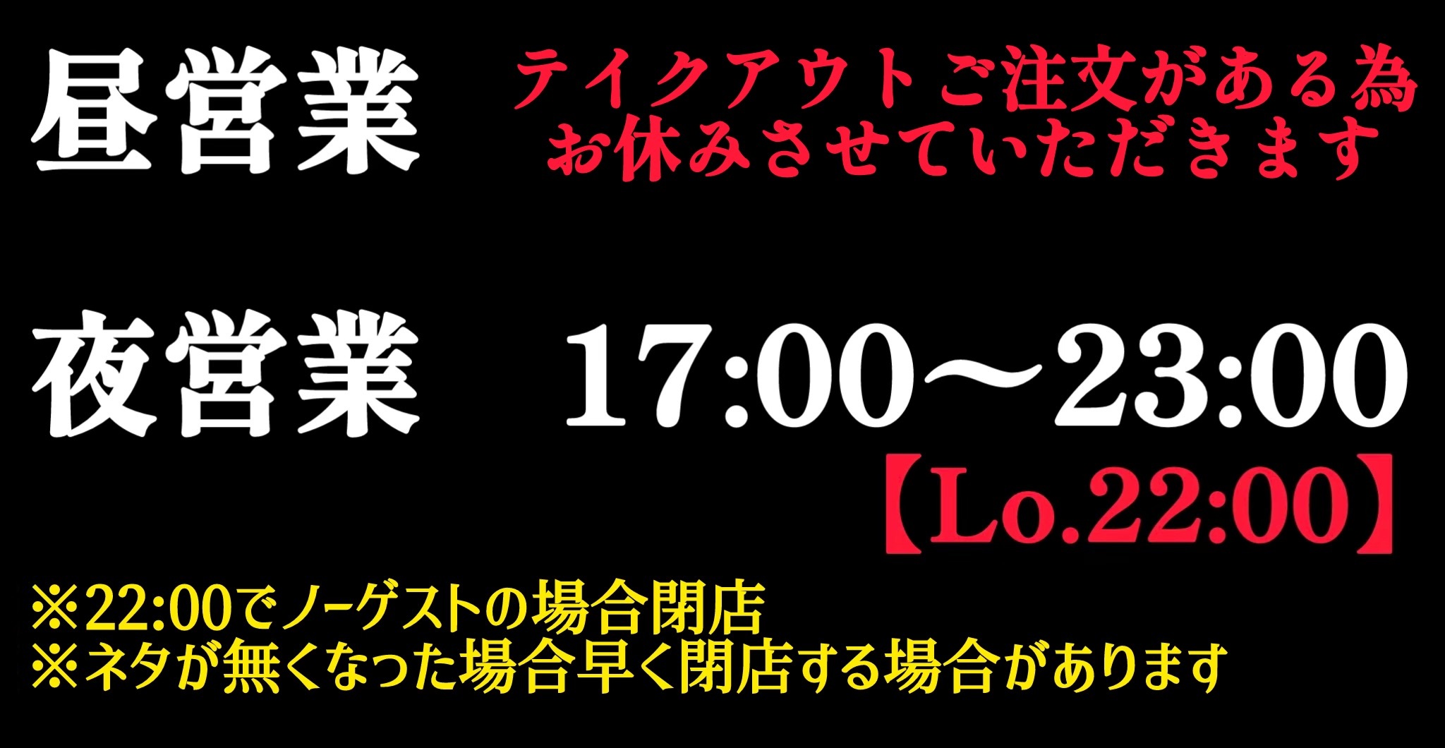 【昼】月〜金・日 11:30〜14:00(L.O.13:30)【夜】月〜土 17:00〜24:00(L.O.23:00) 日 17:00〜22:00(L.O.21:00)